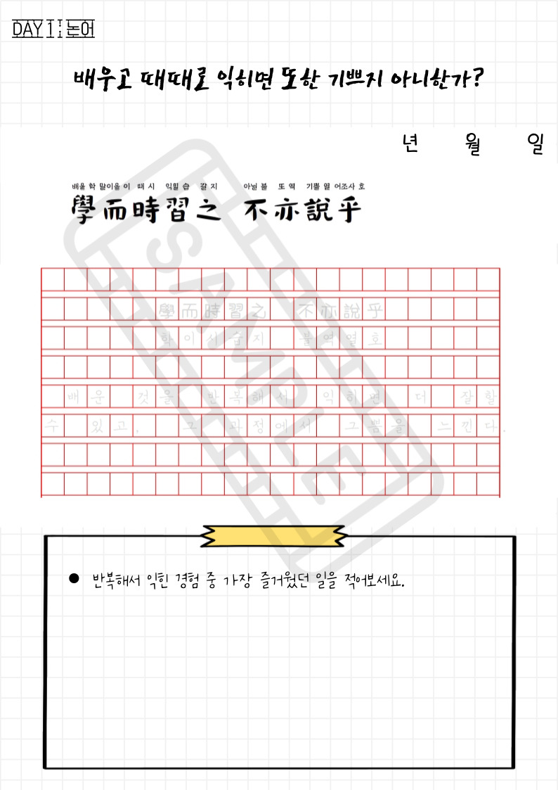 배우고 때때로 익히면 또한 기쁘지 아니한가?