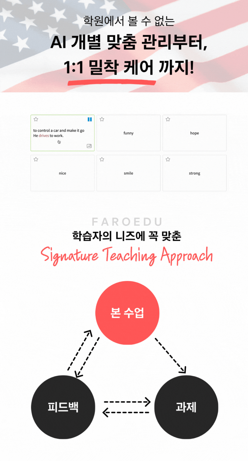 국제교육현장에서 검증된 교수법 적용 및 1:1 밀착관리가 특징입니다.